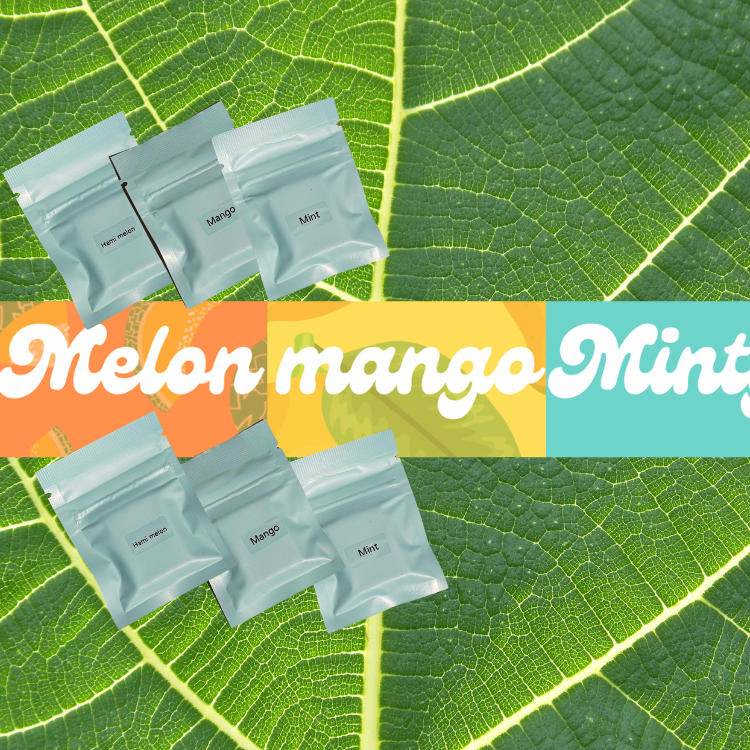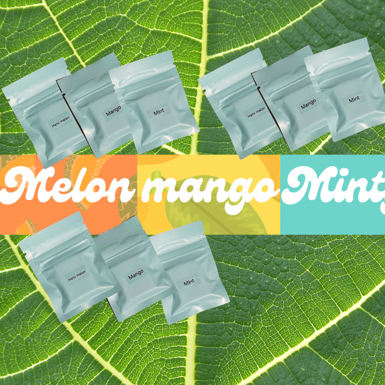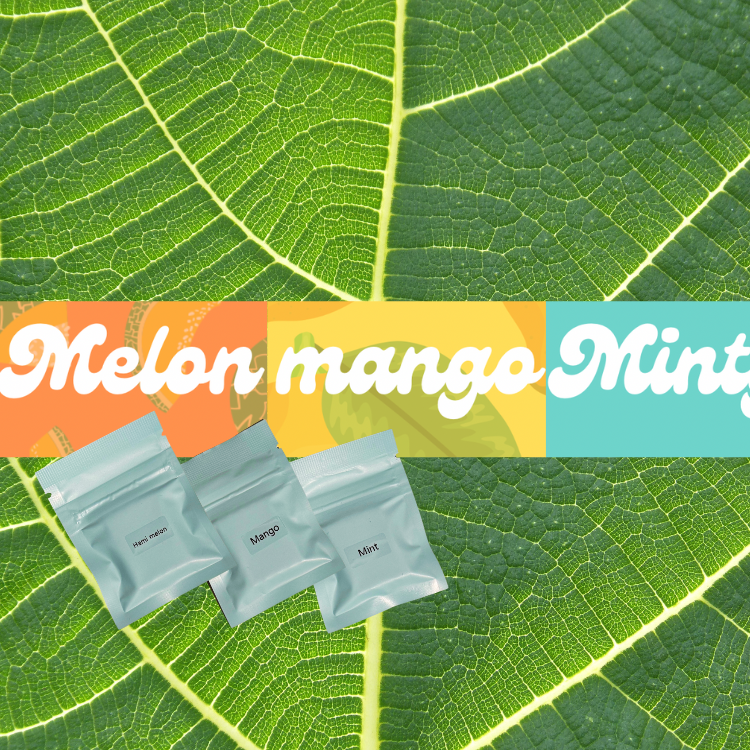 Drei Stück in den Geschmacksrichtungen Minze, Melone und Mango.